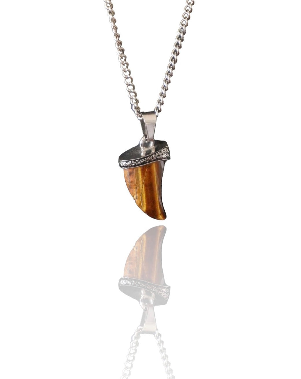 Descubre el pendiente perfecto para el hombre que busca poder y elegancia en cada detalle. En Silver Back, te presentamos una joya excepcional: un pendiente con cadena y estructura plateada, centrado en un impactante diente de tiburón hecho con piedra Ojo de Tigre.