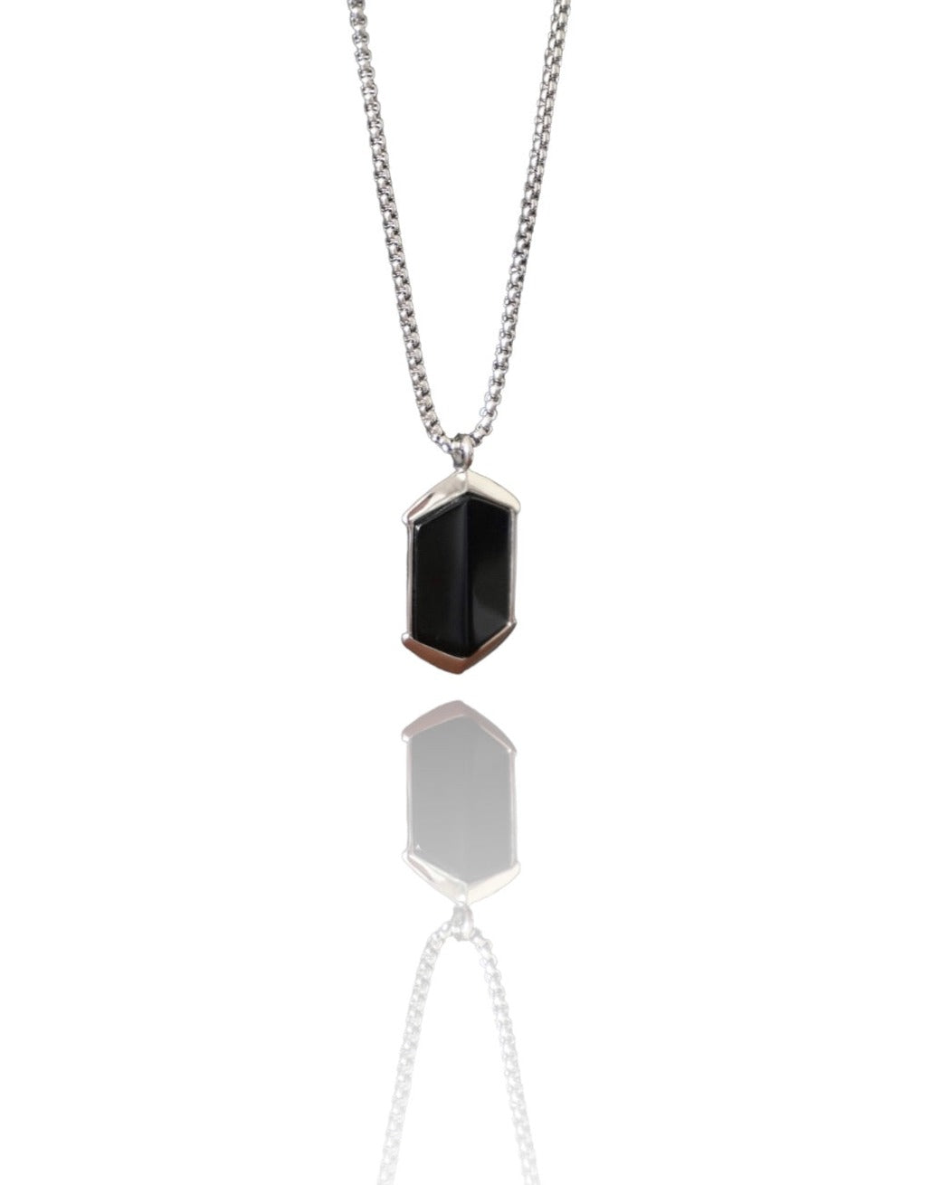 Descubre el accesorio definitivo para el hombre moderno que busca combinar poder y elegancia en cada detalle. En Silver Back, te presentamos una joya que redefine la masculinidad con sofisticación: un pendiente con cadena y estructura plateada, centrado en un imponente escudo con piedra Black Onyx.