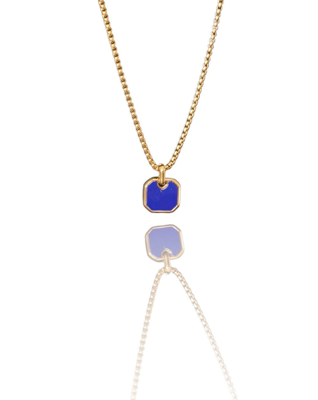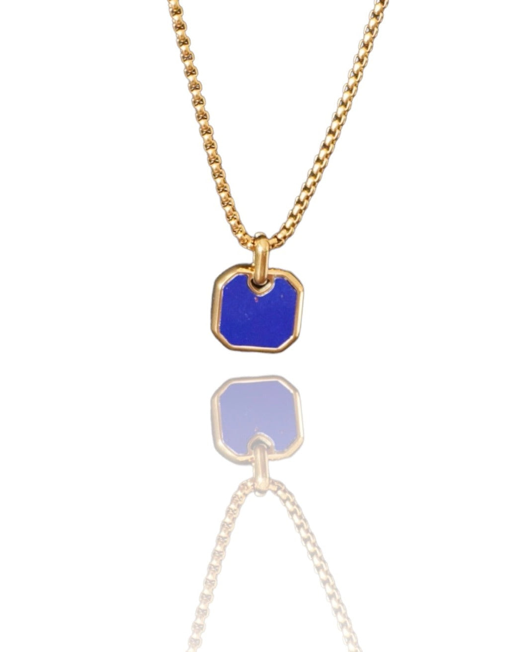 Nuestro pendiente Lápiz Azul, con estructura dorada y cadena incluida, se convierte en un símbolo de poder y nobleza. En el centro de esta obra se encuentra un cuadrado de Lápiz azul, una piedra que simboliza salud, nobleza, suerte, poder, valor, elegancia, pureza y fuerza divina.