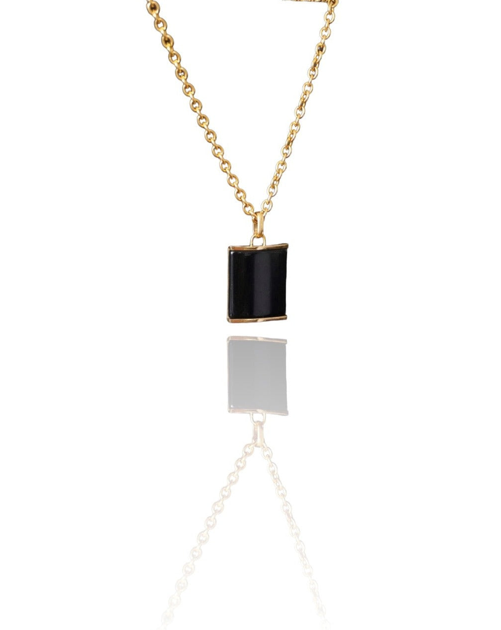 Nuestro pendiente ¨Prisma rectangular Ónix¨con cadena incluida, no es solo un accesorio; es una declaración de carácter y presencia. El ónix, conocido por sus propiedades de protección y estabilidad, se combina con la geometría imponente del prisma, creando una pieza que simboliza fuerza y claridad.